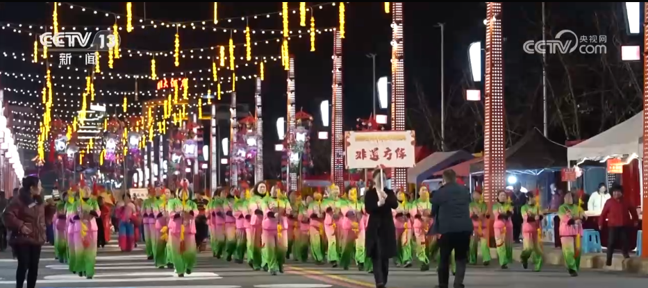 向舞臺(tái)走去的是非遺方陣從前到后分別是錢(qián)桿舞、花燈戲,以及高矮人舞這三個(gè)節(jié)目都是余慶當(dāng)?shù)氐馁F州省級(jí)非遺。每當(dāng)逢年過(guò)節(jié)的時(shí)候,當(dāng)?shù)厝罕姸紩?huì)打扮一番來(lái)到街頭,向周圍的觀眾們送去節(jié)日的祝福。
