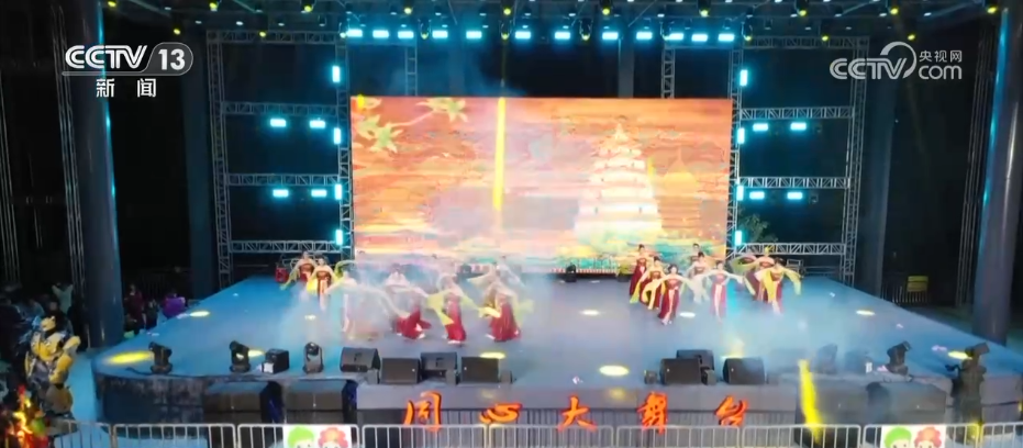 賞完了冰雕霧凇,大家可能已經(jīng)聽(tīng)到了現(xiàn)場(chǎng)熱鬧的音樂(lè)聲,此刻,迎接新年的預(yù)熱演出已經(jīng)開(kāi)場(chǎng),演員們身著藏族服飾跳起歡快的鍋莊舞,舞蹈和歌聲中滿是對(duì)新年的喜悅與期待。