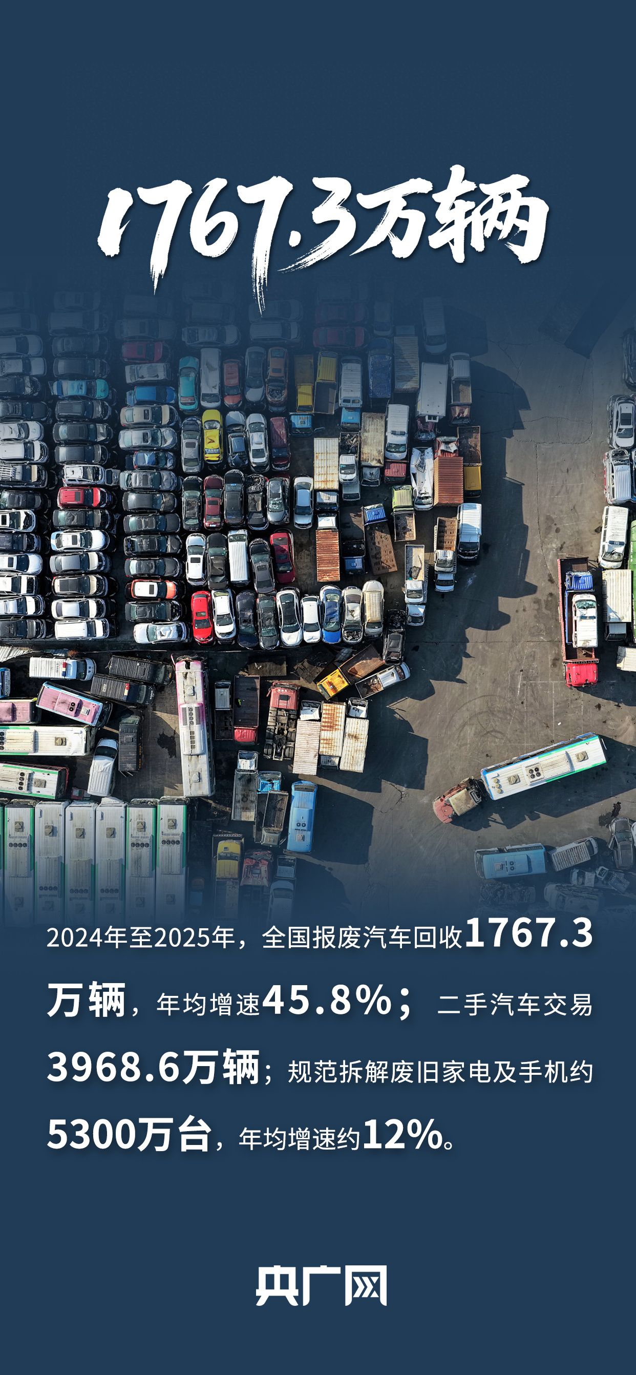 1月6日下午3時,國務(wù)院新聞辦公室舉行新聞發(fā)布會,相關(guān)負責(zé)人介紹推進綠色消費有關(guān)情況,并答記者問。會上介紹,以舊換新政策惠及消費者4.94億人次,全國托盤的標準化率減少200萬噸以上碳排放,2025年全國再生資源回收總量約3.8億噸……戳圖!一組數(shù)據(jù)看中國綠色消費亮眼成績單!