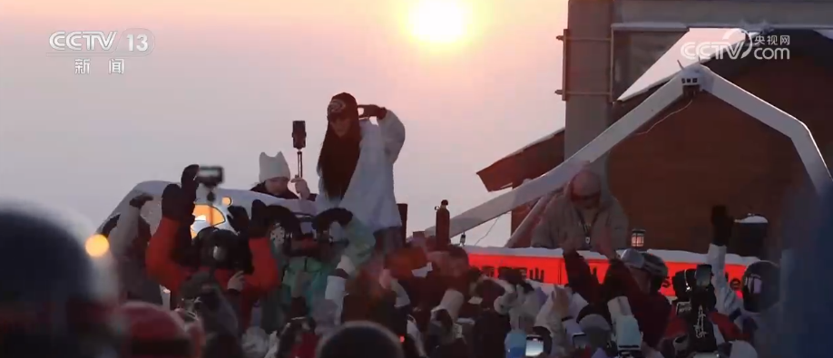 每當傍晚,山頂上還有很多雪友喜愛的“夕陽派對”,在太陽快落山的時候,穿著五顏六色滑雪服的雪友們會從四面八方匯聚到雪場的山頂上,大家一起看橙紅色的夕陽慢慢落下,跟著現(xiàn)場音樂韻律,盡情歡呼跳躍,享受這份活力。