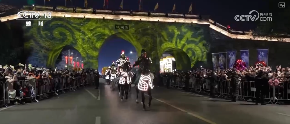 更有2026架無人機騰空而起,勾勒出“萬馬奔騰”“鳳凰展翅”光影長卷,讓游客驚嘆。還有為古城墻披上斑斕外衣的荊風楚韻燈光秀,讓大家賞心悅目。光影流轉間,放佛歷史與現(xiàn)代隔空對話。