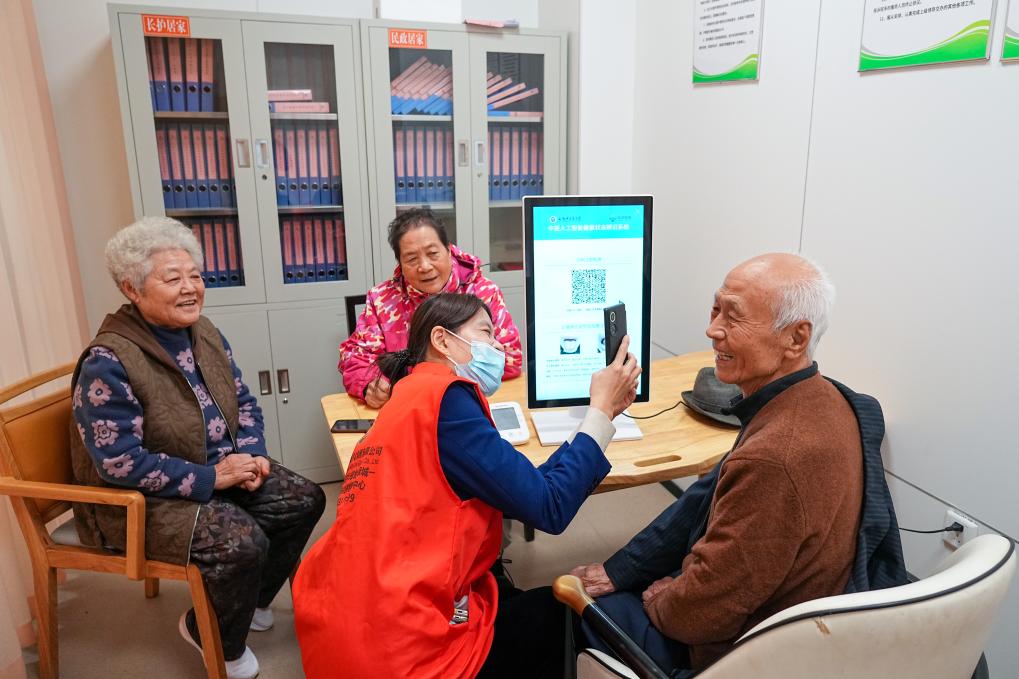 2025年10月,老人們?cè)谏綎|省淄博市張店區(qū)一社區(qū)日間護(hù)理中心測(cè)量健康數(shù)據(jù)。新華社記者 朱崢 攝