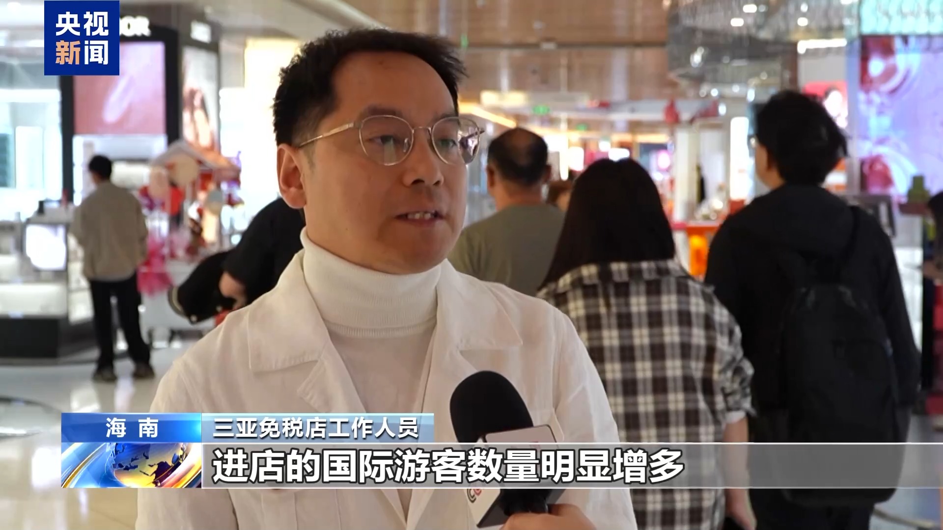 三亞免稅店工作人員:新政實施以來,進店的國際游客數(shù)量明顯增多,尤其在多國人員入境免簽政策加持下,來自東南亞、北美、歐洲地區(qū)的游客越來越多,增幅明顯。