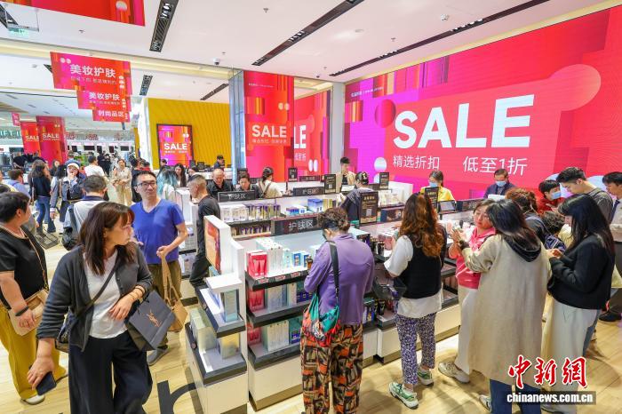圖為元旦假期,cdf??趪?guó)際免稅城迎來購(gòu)物熱潮,眾多游客前來選購(gòu)心儀商品?!≈行戮W(wǎng)記者 駱云飛 攝