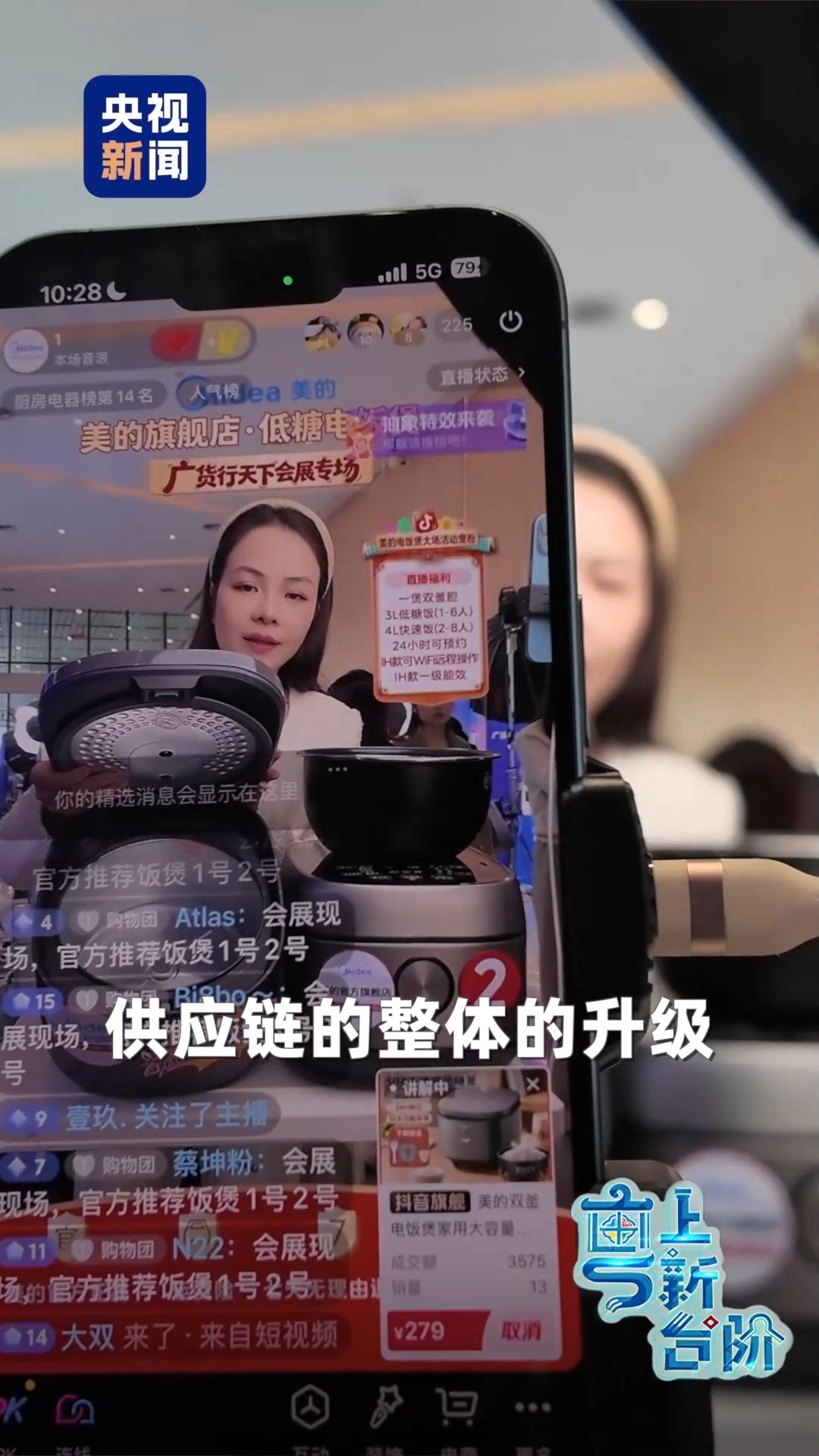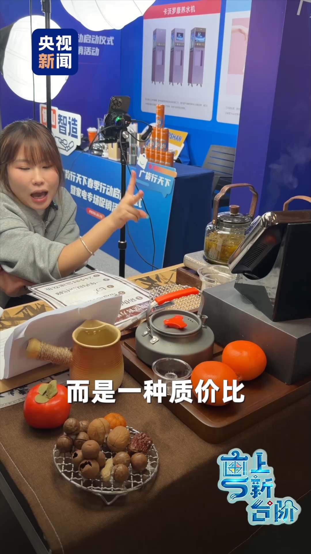 這次的活動現場,幾乎看不到琳瑯滿目的產品陳列,取而代之的是一臺臺手機,一個個熱鬧的直播間。