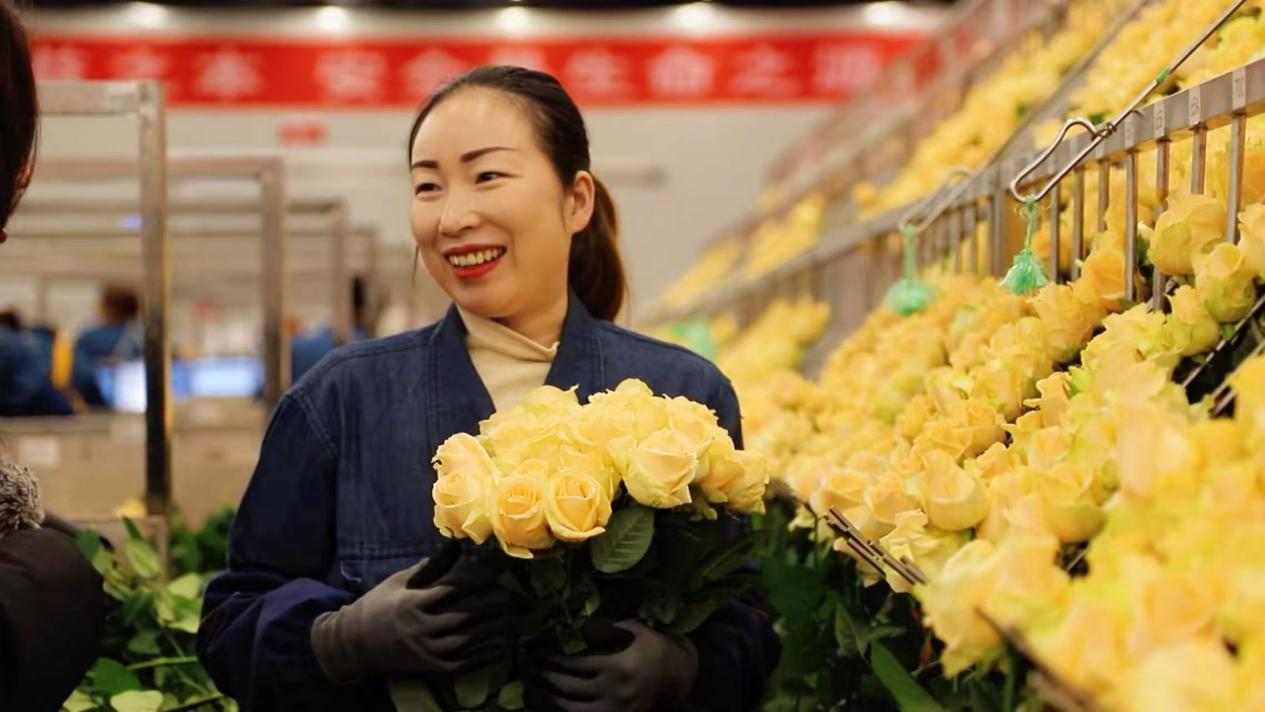 經(jīng)她們之手,高原玫瑰通過冷鏈物流,走向全國各地乃至海外。這讓張婷婷格外自豪:“我包的花有一天竟然能到國外。他們捧著它的時候,會是什么心情?會不會很開心?”