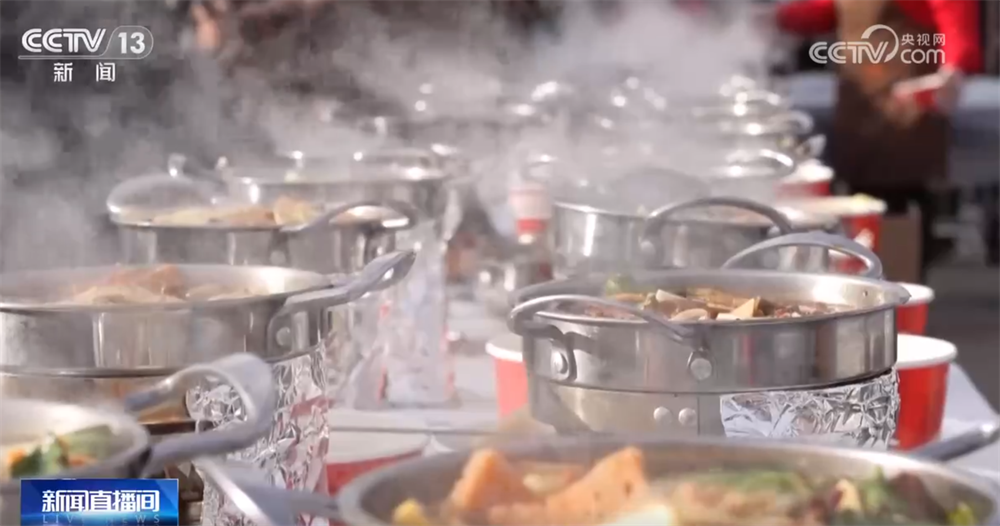 除了年貨采購,廣場(chǎng)中央熱氣騰騰的千人牛雜宴香氣四溢,引來眾多食客駐足品嘗。現(xiàn)場(chǎng)還有互動(dòng)游戲、文藝演出等系列活動(dòng),讓市民與游客感受到濃濃的年味。