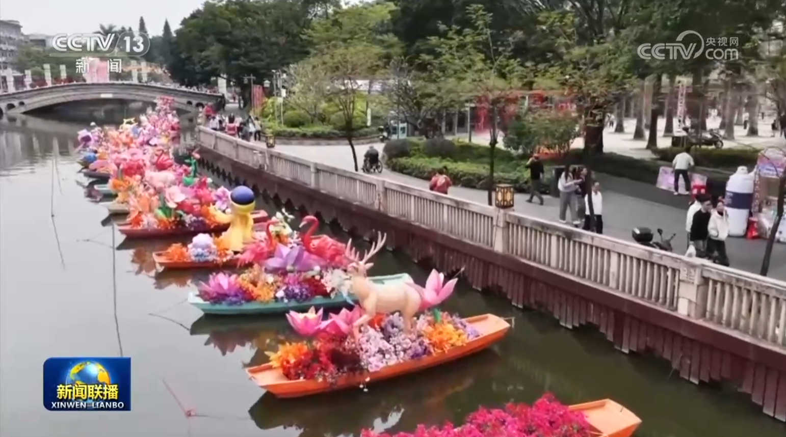 在廣東佛山南海里水鎮(zhèn),嶺南新春水上花市開(kāi)啟。龍舟花舫、七彩花艇滿載著鮮花,穿梭在河道之上。今年的水上花市還打造近30組水陸花燈,讓人們沉浸式體驗(yàn)嶺南水鄉(xiāng)的年味。