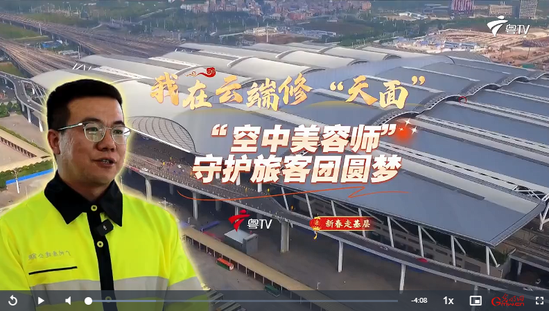 今天的新春走基層,讓我們跟隨國鐵廣州局廣州南房建工區(qū)工長黃榮彬,去看看這些車站“空中美容師”的日常。