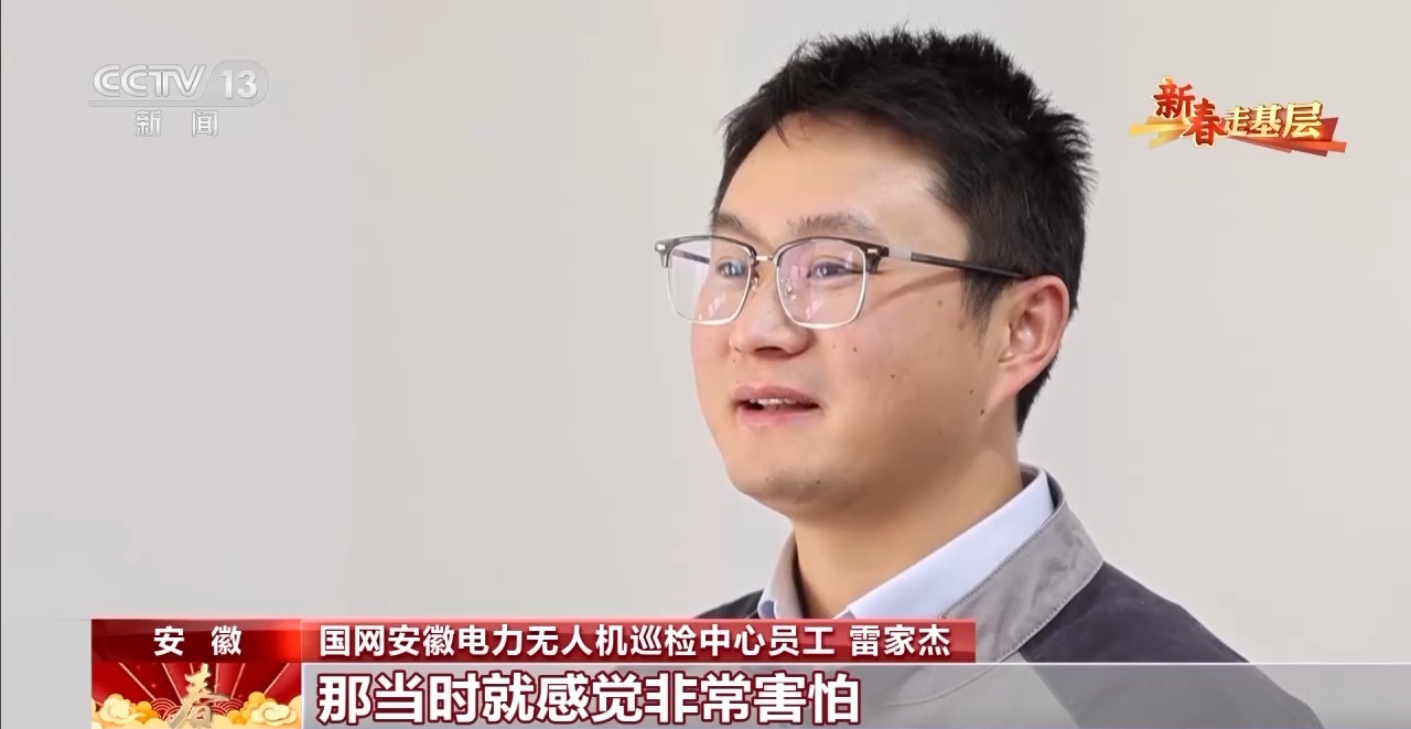 國(guó)網(wǎng)安徽電力無(wú)人機(jī)巡檢中心員工 雷家杰:第一次飛,就把無(wú)人機(jī)搞壞了。一架好幾萬(wàn),頂我一年的工資,當(dāng)時(shí)就感覺非常害怕?,F(xiàn)場(chǎng)不敢飛了,一看飛機(jī)離塔那么近,我手抖,后來(lái)腿都抖。