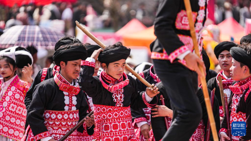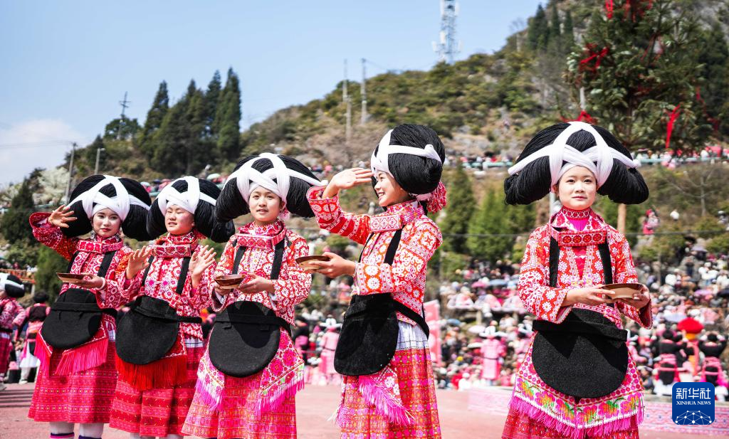 2月26日,在貴州省六盤水市六枝特區(qū)梭戛苗族彝族回族鄉(xiāng)高興村跳花場,苗族群眾在表演舞蹈。