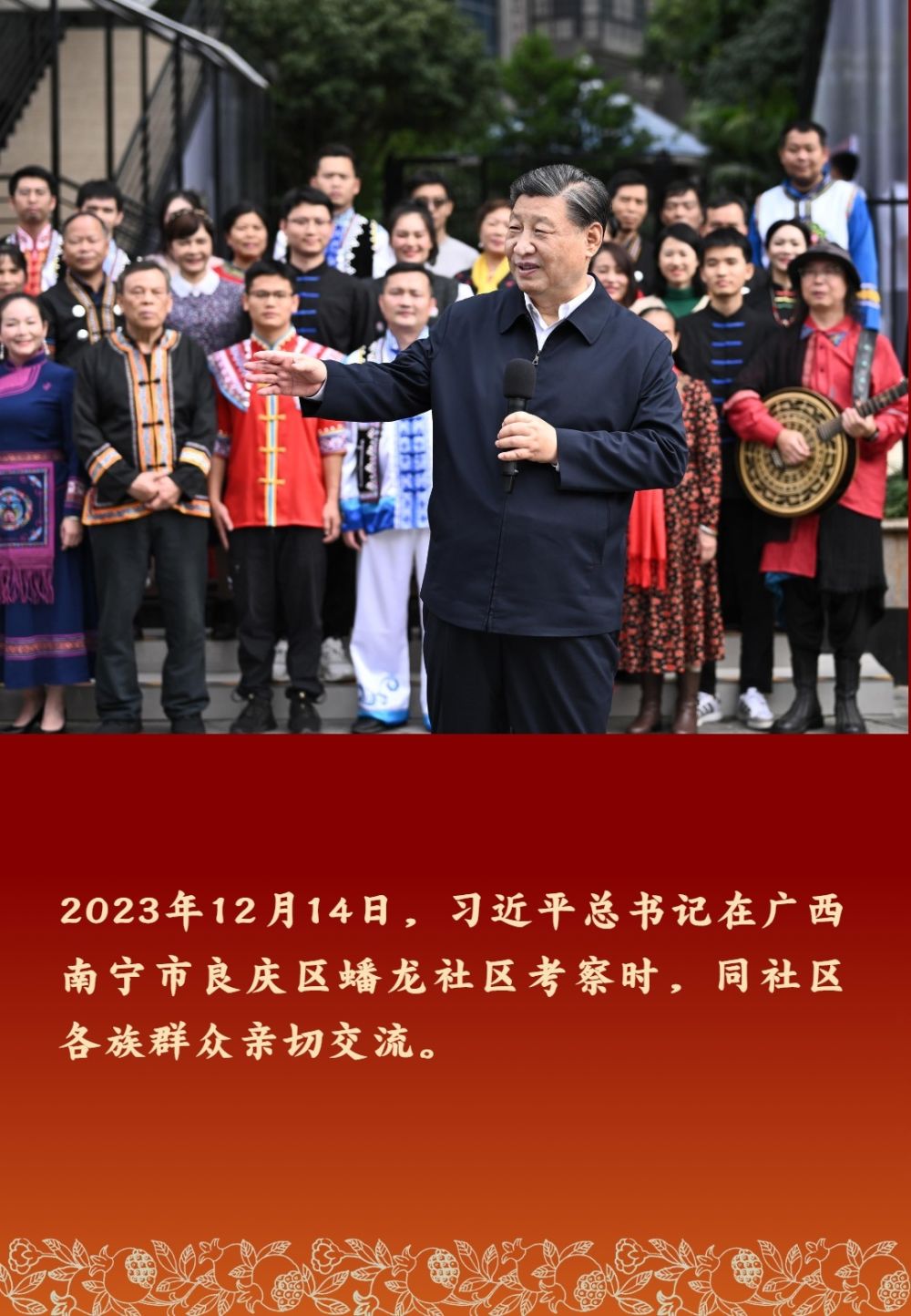 以習近平同志為核心的黨中央高度重視民族工作,十分關心少數(shù)民族群眾。習近平總書記多次深入民族地區(qū)考察調(diào)研,同各族群眾親切交流,勉勵大家鑄牢中華民族共同體意識,像石榴籽那樣緊緊抱在一起。