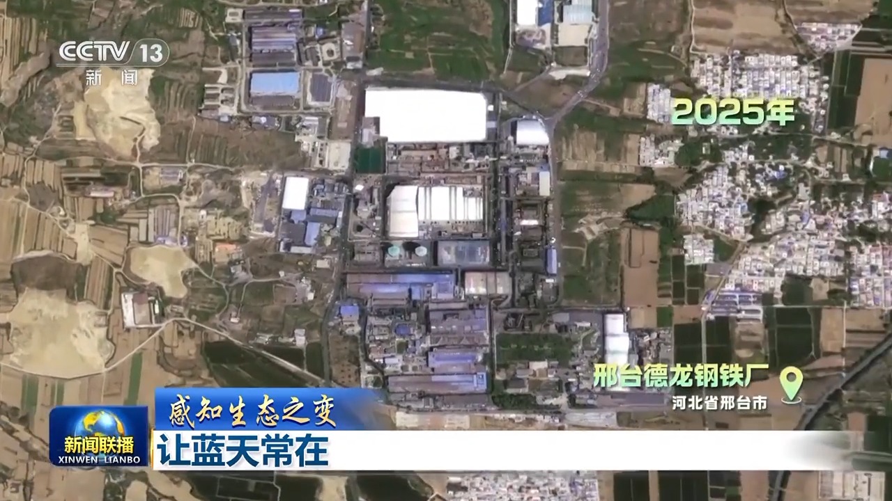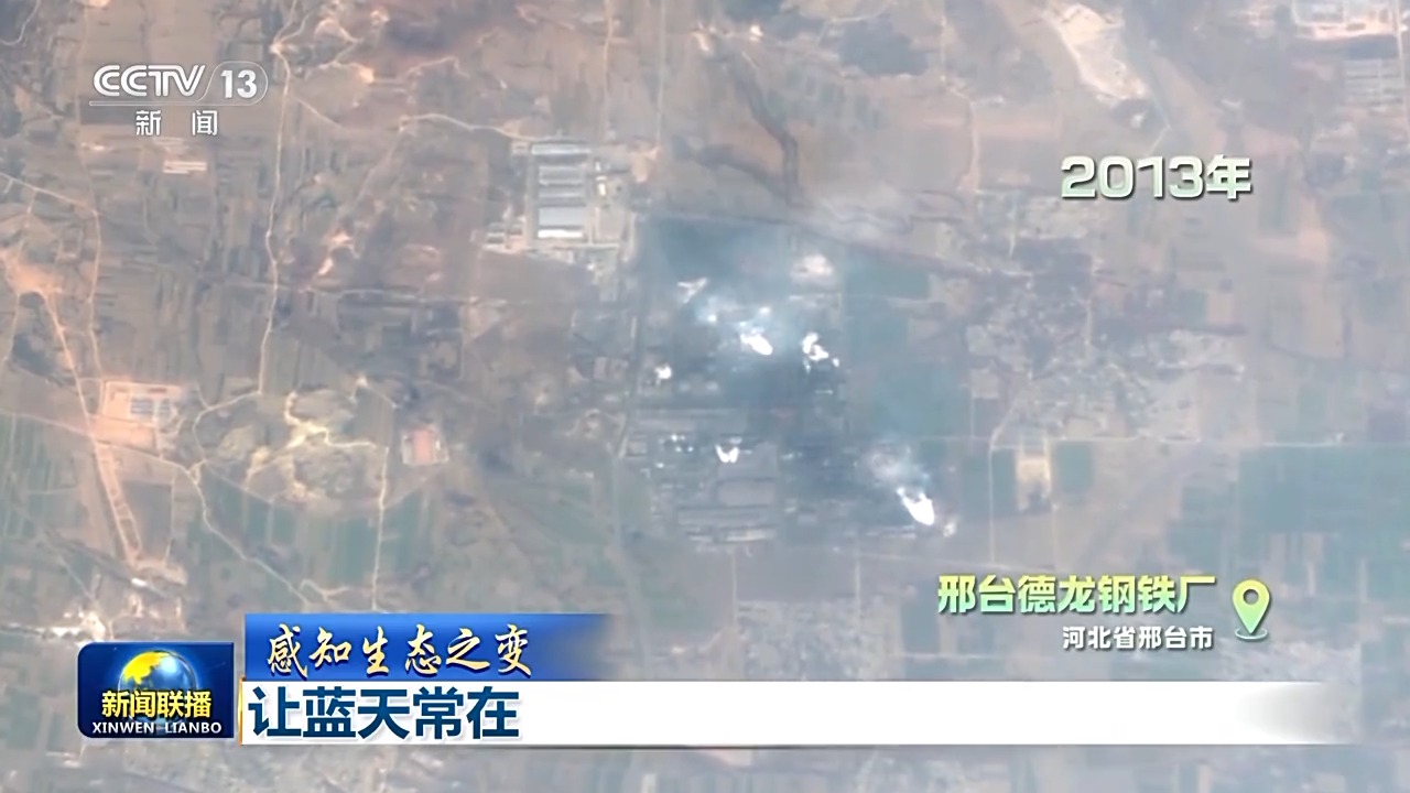 這是當(dāng)時,環(huán)境監(jiān)測衛(wèi)星拍到的德龍鋼鐵廠,霧霾最嚴(yán)重的時候幾乎看不出廠區(qū)輪廓。而如今,卻是清晰可見,綠意蔥蔥。