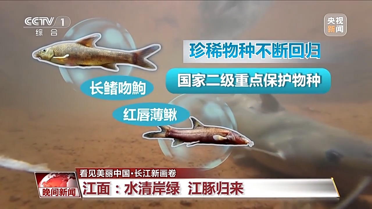 如今,最新監(jiān)測到長江江豚種群已達(dá)1249頭,比5年前增長了200多頭。重新回到長江家園的不只是江豚,長江物種多樣性水平在穩(wěn)步回升,2021年至2024年,長江流域累計(jì)監(jiān)測到土著魚類344種,比禁漁前2017年至2020年增加了36種。