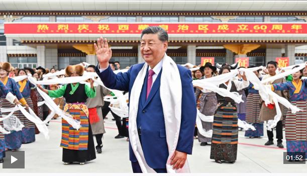 中共中央總書記、國家主席、中央軍委主席習近平率中央代表團20日中午乘專機抵達拉薩,出席西藏自治區(qū)成立60周年慶?;顒?。習近平等在機場和拉薩市區(qū)受到西藏各族群眾的熱烈歡迎。中共中央政治局常委、全國政協(xié)主席、中央代表團團長王滬寧,中共中央政治局常委、中央辦公廳主任蔡奇等同機抵達。