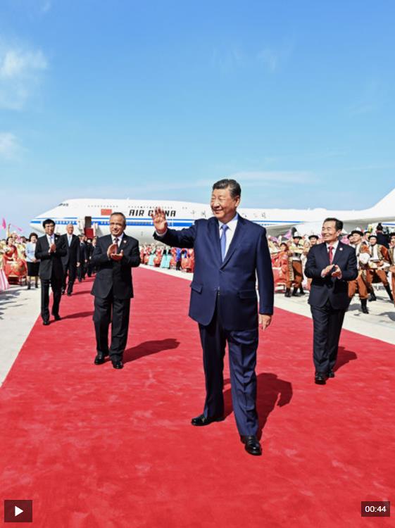 中共中央總書記、國(guó)家主席、中央軍委主席習(xí)近平率中央代表團(tuán)23日下午乘專機(jī)抵達(dá)烏魯木齊,出席新疆維吾爾自治區(qū)成立70周年慶祝活動(dòng)。習(xí)近平等在機(jī)場(chǎng)和烏魯木齊市區(qū)受到新疆各族群眾的熱烈歡迎。