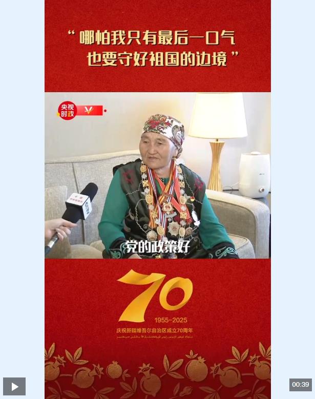“人民楷?!眹覙s譽稱號獲得者布茹瑪汗·毛勒朵表達了她最想對總書記說的話:“我從19歲開始守邊護邊,哪怕我只有最后一口氣,也要守好祖國的邊境?!?/p>
