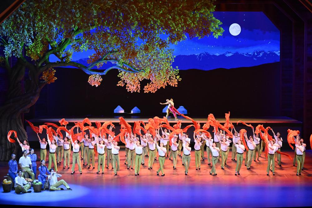 演出共3個(gè)篇章,展現(xiàn)新疆社會(huì)主義建設(shè)的火熱場(chǎng)景,表現(xiàn)改革開(kāi)放給新疆帶來(lái)的蓬勃生機(jī),描繪新疆各族兒女同心筑夢(mèng)新時(shí)代的美好圖景。