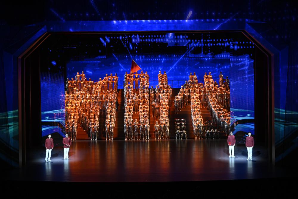 24日的文藝晚會《美麗新疆》中,創(chuàng)意詩舞畫《時代交響》,以絢麗變幻的聲光電,生動描繪天山南北的日新月異。