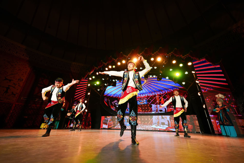 2025年5月1日,《新疆維吾爾自治區(qū)瑪納斯非物質(zhì)文化遺產(chǎn)保護(hù)條例》正式實(shí)施,為保護(hù)這部列入聯(lián)合國(guó)教科文組織非遺名錄的柯爾克孜族英雄史詩提供了法規(guī)遵循。這是2025年4月22日,演員在位于新疆阿圖什市的瑪納斯史詩大劇院為游客表演。