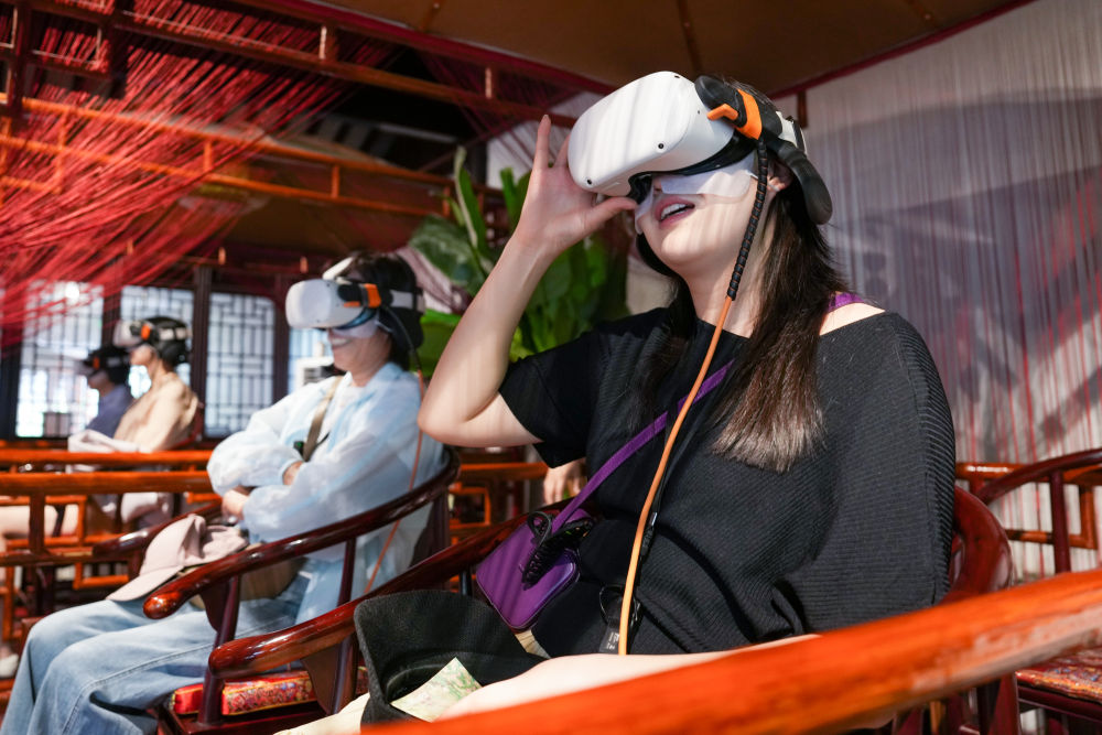 2025年5月18日,游客在江蘇蘇州拙政園體驗(yàn)VR漫游。近年來,蘇州不斷推進(jìn)“數(shù)字園林”建設(shè),在園林整體數(shù)字建模、園林要素?cái)?shù)據(jù)庫建設(shè)等方面開展探索,利用數(shù)字技術(shù)創(chuàng)造“數(shù)字云游”VR場(chǎng)景,打造“云游拙政園”“獅林園宇宙”“留園虛擬元宇宙”等項(xiàng)目,營(yíng)造真實(shí)可感的虛擬空間,讓觀眾沉浸式感受蘇州園林的獨(dú)特魅力。