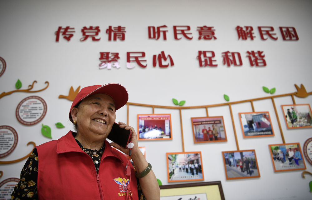 2019年11月29日,在浙江省湖州市織里鎮(zhèn)社會治理綜合服務中心調解室,“平安大姐”工作室的志愿者調解糾紛?!捌桨泊蠼恪眻F隊運用中華優(yōu)秀傳統(tǒng)文化中的“調解”思維,依靠親情、友情、鄉(xiāng)情“說和調停”,調解糾紛,化解矛盾。
