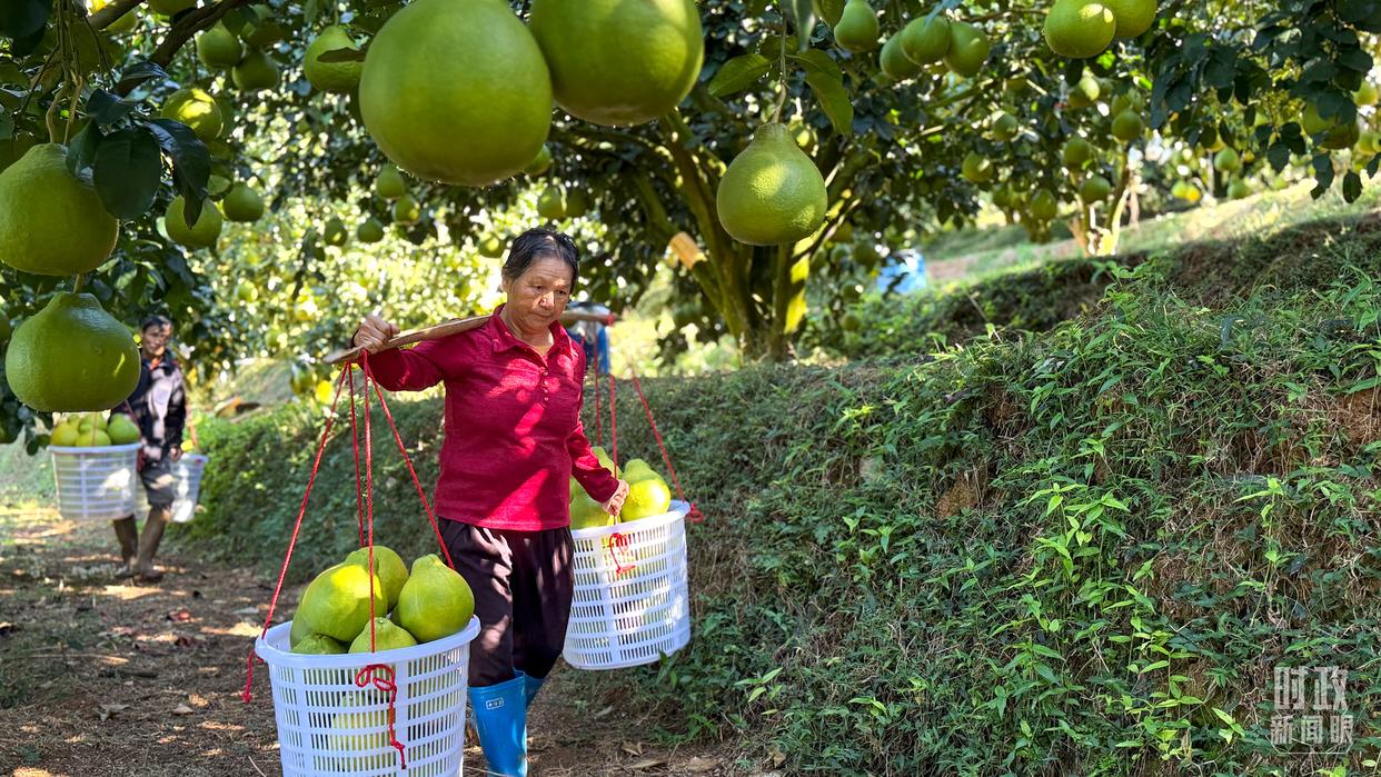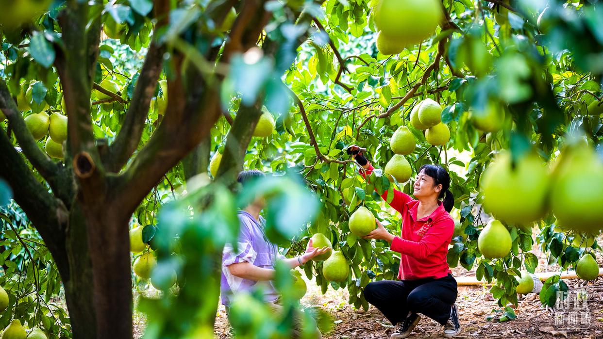 △南福金柚種植基地,柚林迎來(lái)豐收。(總臺(tái)記者吳媚苗、總臺(tái)央視記者鄂介甫拍攝)