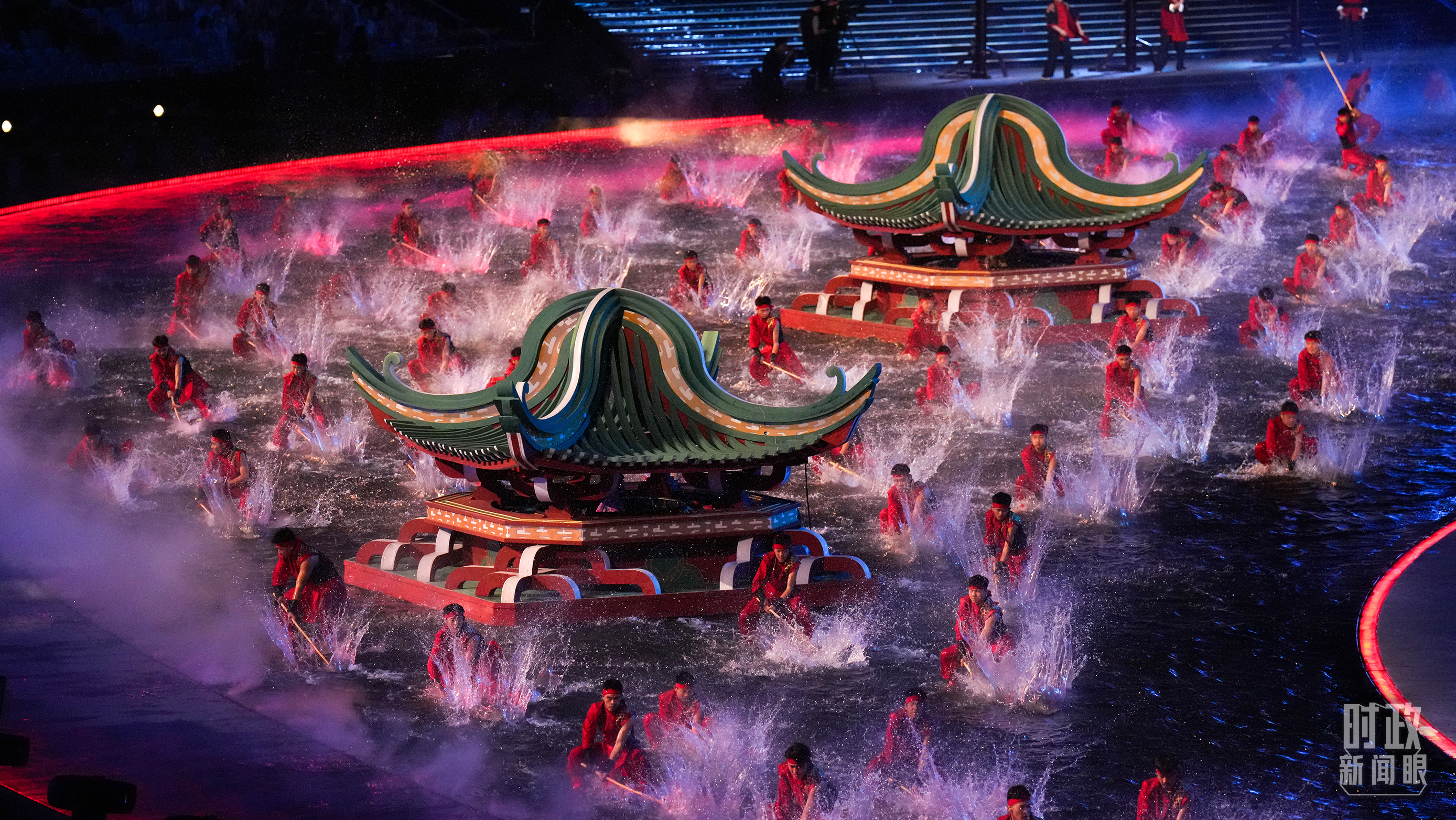 廣東奧體中心內(nèi),一幅運用人工智能技術(shù)、展現(xiàn)嶺南瑰麗風(fēng)光的“長卷”徐徐鋪展。開幕式包括入場儀式、奏唱國歌、參賽運動員等代表宣誓、文體展演、主火炬點燃儀式等多個環(huán)節(jié)。其中,展現(xiàn)粵港澳三地攜手合辦的“同心”“融合”等元素,成為這場開幕式的一大特點。