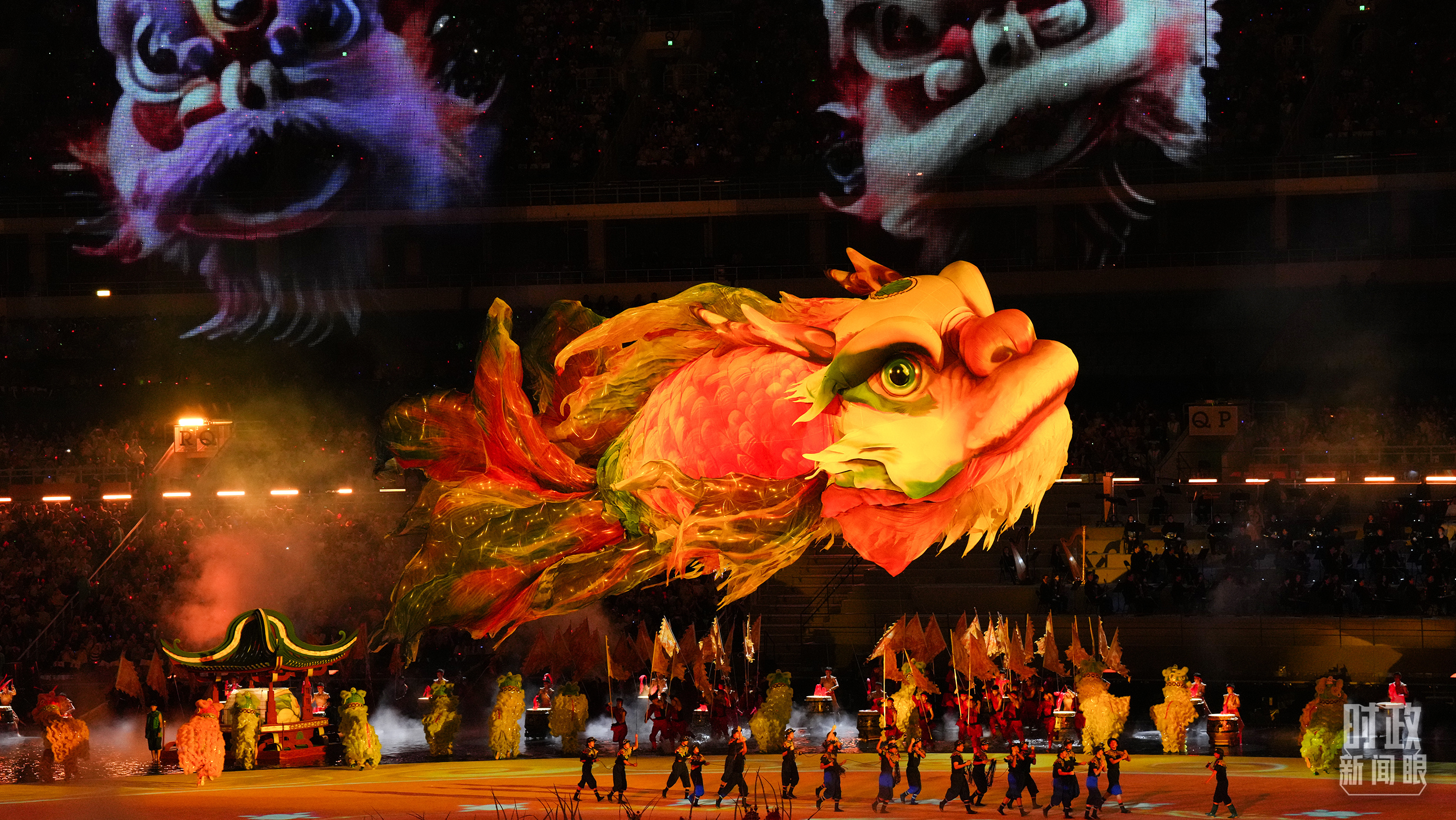 粵港澳大灣區(qū)作為全國科技重鎮(zhèn),傳統(tǒng)嶺南文化與前沿科技深度融合成為本屆全運會開幕式的一大亮點。醒獅表演與人工智能技術(shù)相互交融,英歌鑼鼓搭配全息投影,龍舟競渡場景通過AR技術(shù)“劃”入觀眾席,一場“古今對話”的沉浸式藝術(shù)盛宴“燃動”全場?;泟 ⒃伌?、麒麟、廣繡、嵌瓷等璀璨的嶺南文化符號巧妙融入,賦予開幕式獨特的嶺南神韻。