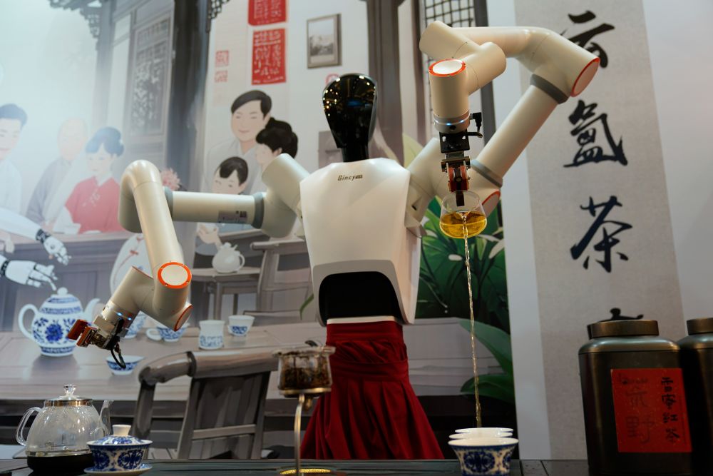 2025年5月31日,在第九屆中國成都國際非物質(zhì)文化遺產(chǎn)節(jié)上,機器人茶藝師表演茶藝。5月28日至6月3日,第九屆中國成都國際非物質(zhì)文化遺產(chǎn)節(jié)在四川成都舉行。