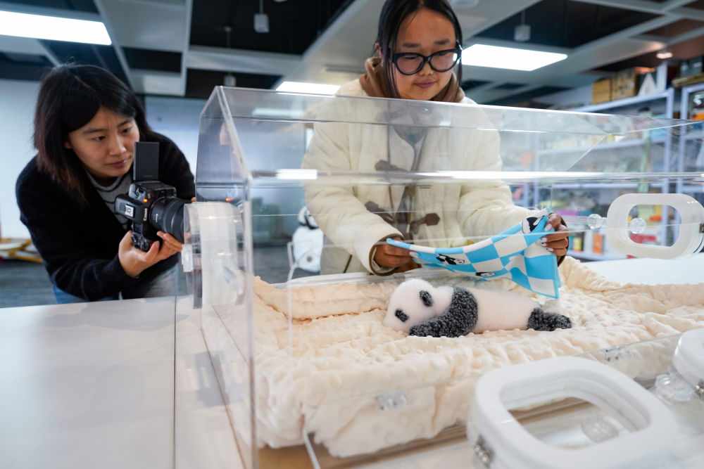 2024年11月20日,在位于四川省成都市的“熊貓工廠”總部,工作人員在為22日齡新生大熊貓幼崽高仿真玩偶產(chǎn)品拍攝短視頻。依托我國傳統(tǒng)非遺裘皮制作技藝,以不同年齡段的“和花”“萌蘭”“香香”“福寶”等“網(wǎng)紅”大熊貓為原型,運用3D建模等技術開發(fā)出高仿真、超仿真玩偶,當?shù)仄髽I(yè)已在全球50多個國家和地區(qū)累計銷售超過5萬只定制仿真大熊貓,也在短短幾年內(nèi)成長為年營收破千萬元的企業(yè)。