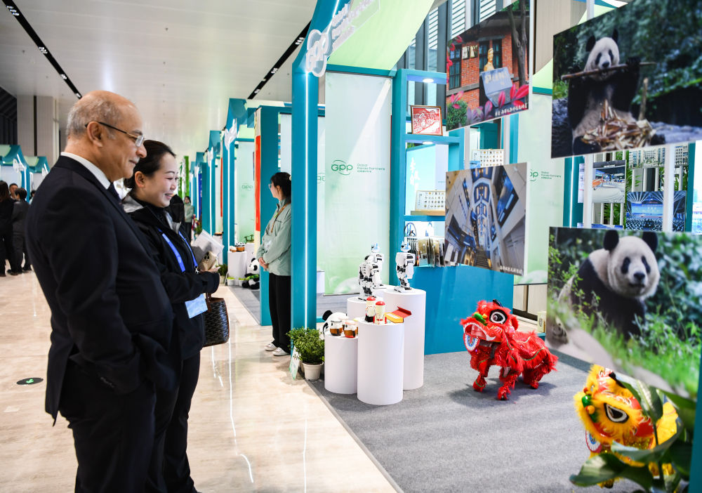 2024年11月26日,參會嘉賓在2024全球熊貓伙伴大會間隙觀看舞獅機器人表演。
