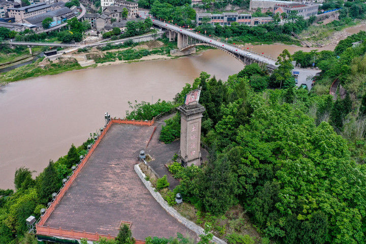 位于赤水河畔的貴州省遵義市習(xí)水縣土城鎮(zhèn),是赤水河中游的重要碼頭,同時(shí)也被稱作“躺在紀(jì)念館上的紅色小鎮(zhèn)”。1935年,中央紅軍在土城一渡赤水河,拉開了四渡赤水戰(zhàn)役的序幕。這是2021年4月21日拍攝的土城渡口紀(jì)念碑(無(wú)人機(jī)照片)。