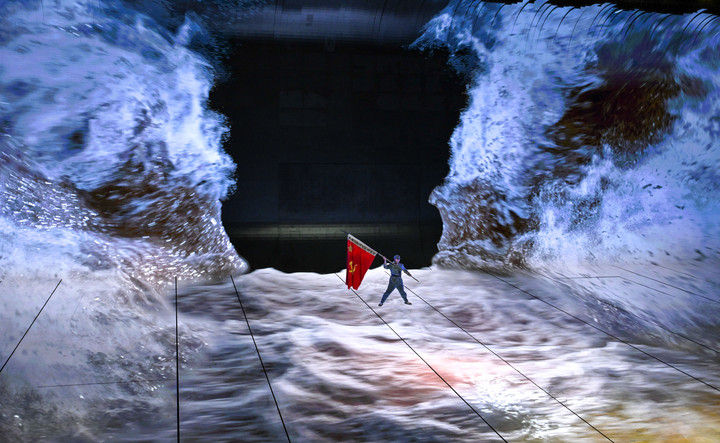 2025年11月15日,演員在貴州長(zhǎng)征文化數(shù)字藝術(shù)館進(jìn)行《紅飄帶·偉大遠(yuǎn)征》全域行浸數(shù)字演藝。