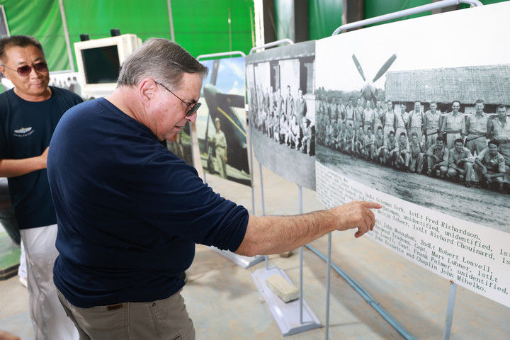 2025年7月16日,美中航空遺產(chǎn)基金會(huì)主席杰夫·格林在貴州黃平舊州機(jī)場(chǎng)查看飛虎隊(duì)資料照片??箲?zhàn)時(shí)期,舊州機(jī)場(chǎng)主要承擔(dān)飛機(jī)加油、彈藥補(bǔ)充和維修任務(wù)。常駐于此的美國(guó)飛虎隊(duì)?wèi)?zhàn)機(jī)頻頻在該機(jī)場(chǎng)起降,參加了湘西會(huì)戰(zhàn)、衡陽(yáng)保衛(wèi)戰(zhàn)等著名戰(zhàn)役。該機(jī)場(chǎng)見證了中美聯(lián)合反抗法西斯的光輝歷史,還為確?!榜劮搴骄€”的順利暢通發(fā)揮了舉足輕重的作用。