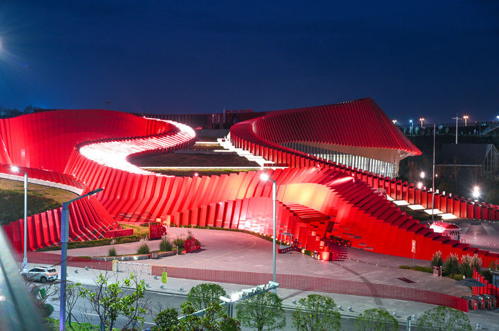 這是2025年11月15日拍攝的貴州長(zhǎng)征文化數(shù)字藝術(shù)館——“紅飄帶”夜景。