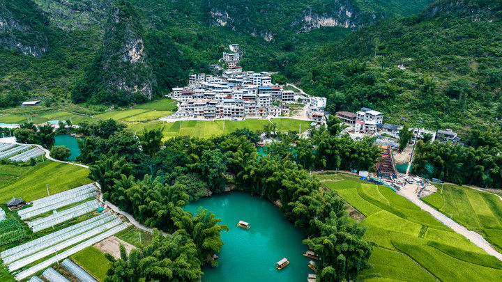 游客乘船游玩貴州省羅甸縣沫陽(yáng)鎮(zhèn)大小井景區(qū)(2025年8月12日攝,無(wú)人機(jī)照片)。通過(guò)不斷升級(jí)基礎(chǔ)設(shè)施、優(yōu)化服務(wù)體系,羅甸縣以旅居康養(yǎng)為特色,將豐富的山水資源轉(zhuǎn)化為旅游優(yōu)勢(shì),讓“享玩水 趣羅甸”成為夏日品牌,推動(dòng)全域旅游高質(zhì)量發(fā)展。