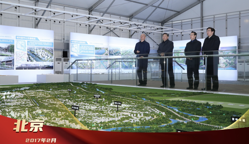 2017年2月24日,習(xí)近平總書記在北京城市副中心行政辦公區(qū)建設(shè)現(xiàn)場指揮部察看規(guī)劃沙盤,了解副中心建設(shè)理念、目標(biāo)定位、文化保護(hù)等情況。創(chuàng)新為要、“瓣瓣同心”,總書記的戰(zhàn)略擘畫,引領(lǐng)京津冀協(xié)同發(fā)展走深走實(shí)。