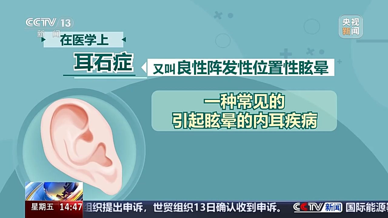 首都醫(yī)科大學(xué)宣武醫(yī)院耳鼻咽喉頭頸外科副主任醫(yī)師 丁秀勇:耳石癥是因為我們在耳朵里面一塊兒小的石頭(碳酸鈣結(jié)晶)脫落了,脫落到了一個異常的位置,當(dāng)石頭在耳朵里流動的時候,就會出現(xiàn)眩暈的感覺。
