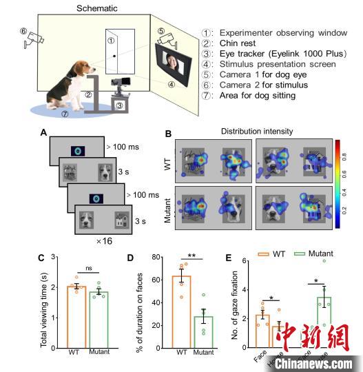 論文第一作者、中國科學(xué)院遺傳發(fā)育所博士生袁思琦說,家犬在長期家養(yǎng)馴化過程中獲得卓越的面孔認(rèn)知能力(會看臉色),是研究面孔加工的理想動物模型之一。在團(tuán)隊前期成功構(gòu)建孤獨癥家犬模型的基礎(chǔ)上,本次研究進(jìn)一步發(fā)現(xiàn)攜帶Shank3基因突變的比格犬表現(xiàn)出類似孤獨癥患者的面孔加工異常,這為研究面孔加工的神經(jīng)機(jī)制和干預(yù)方案提供了寶貴的動物模型。