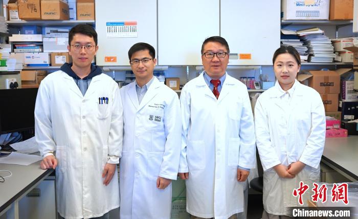 4月10日,香港大學(xué)醫(yī)學(xué)院宣布,其研究團隊成功開發(fā)突破性癌癥免疫新療法,名為光敏混合型γδ-T細胞外泌體,能針對并摧毀癌細胞,為癌癥治療帶來突破。圖為香港大學(xué)醫(yī)學(xué)院臨床醫(yī)學(xué)學(xué)院兒童及青少年科學(xué)系教授涂文偉(右二),以及香港大學(xué)醫(yī)學(xué)院藥理及藥劑學(xué)系、李達三博士研究中心副教授汪衛(wèi)平(左二)領(lǐng)導(dǎo)的研究團隊。 (香港大學(xué)供圖)