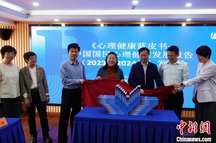《心理健康藍(lán)皮書(shū):中國(guó)國(guó)民心理健康發(fā)展報(bào)告(2023~2024)》在北京發(fā)布,圖為新書(shū)揭幕儀式。中新網(wǎng)記者 孫自法 攝
