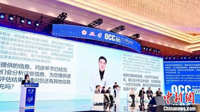 葛均波的數(shù)字人分身,與一位標準化患者進行了模擬問診。(東方會組委會供圖)