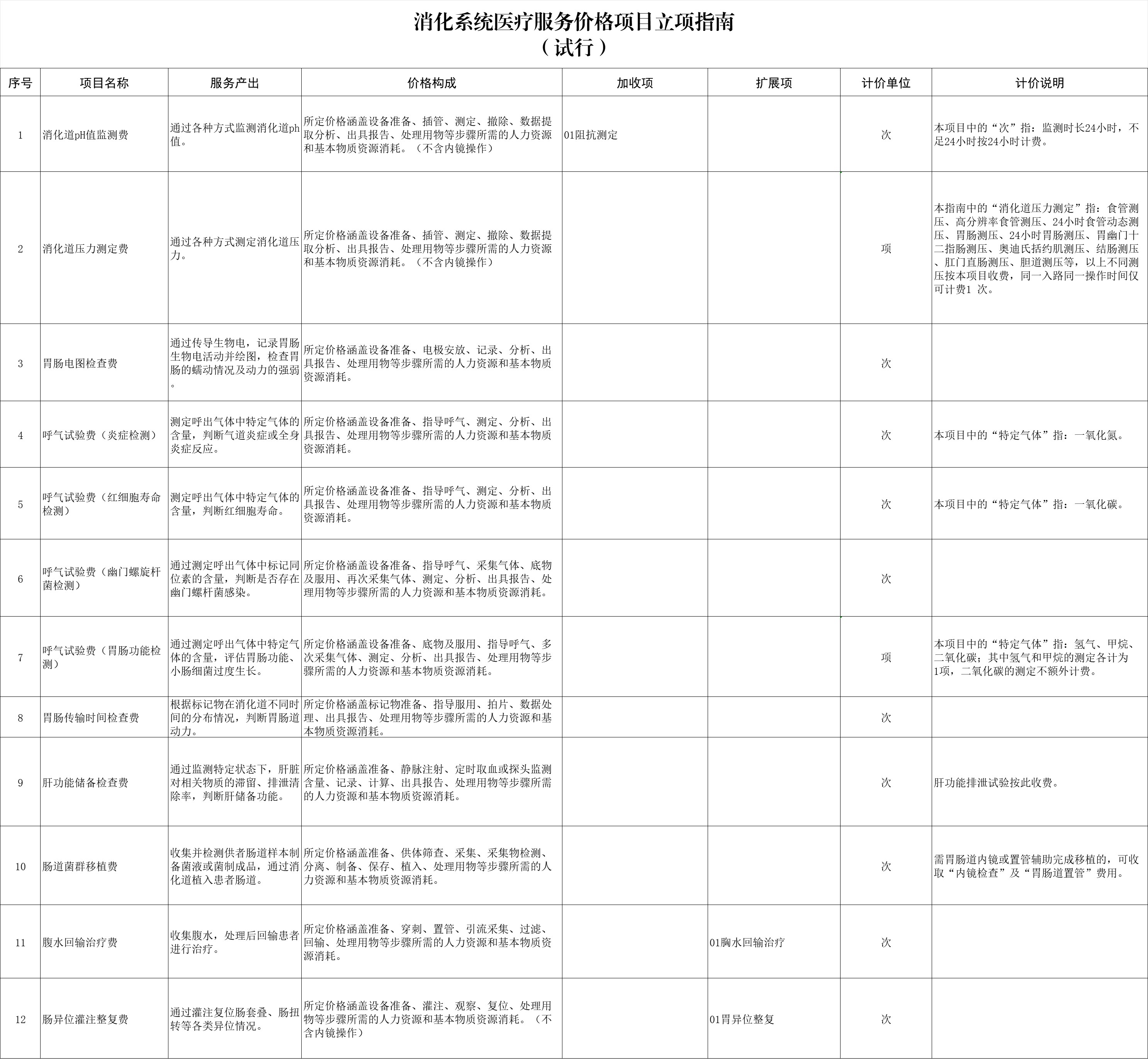 據(jù)國家醫(yī)保局網(wǎng)站消息,為貫徹落實(shí)《深化醫(yī)療服務(wù)價(jià)格改革試點(diǎn)方案》,推進(jìn)全國醫(yī)療服務(wù)價(jià)格項(xiàng)目規(guī)范編制工作,按照“成熟一批、發(fā)布一批”的工作思路,近日國家醫(yī)保局編制印發(fā)《消化系統(tǒng)醫(yī)療服務(wù)價(jià)格項(xiàng)目立項(xiàng)指南(試行)》,參考2023年版醫(yī)療服務(wù)項(xiàng)目技術(shù)規(guī)范,將現(xiàn)行價(jià)格項(xiàng)目映射整合為150項(xiàng),加收項(xiàng)69項(xiàng),擴(kuò)展項(xiàng)16項(xiàng)。