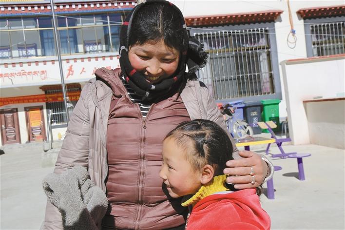 剛拆完石膏的髖關(guān)節(jié)脫位患兒索朗卓嘎高興地依偎在母親懷里。 記者 黃志武 攝