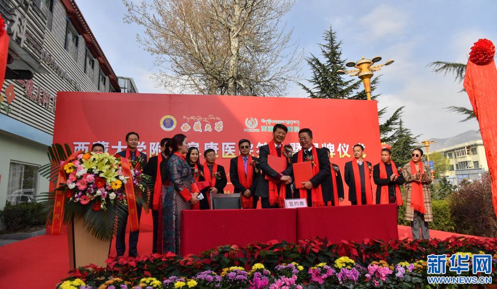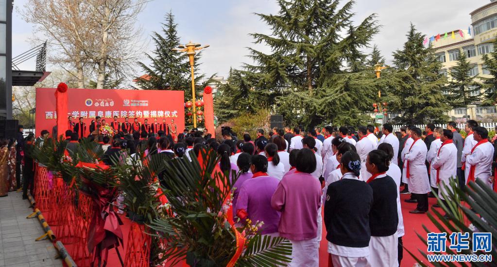 西藏大學(xué)附屬阜康醫(yī)院簽約暨揭牌儀式現(xiàn)場(chǎng)(4月7日攝)。