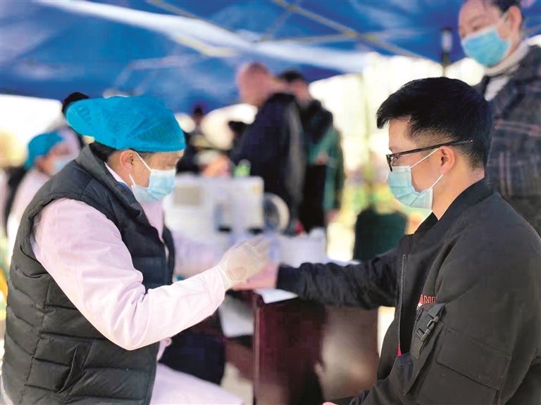 圖為醫(yī)護(hù)人員為獻(xiàn)血者檢測血液。(拉薩融媒視覺組攝)