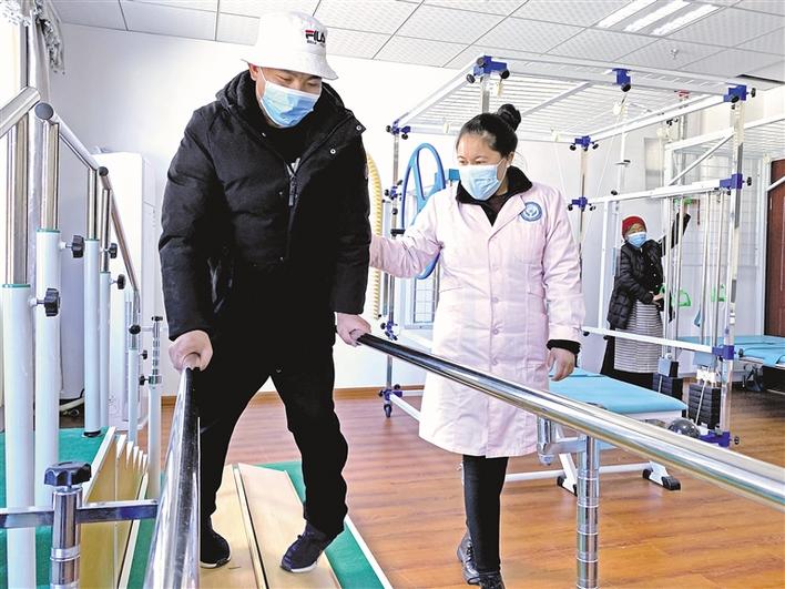 圖為瓊結(jié)縣中心工作人員在幫助患者做康復(fù)訓(xùn)練。倫珠澤仁 洛桑 攝