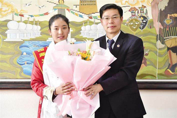 5月7日,自治區(qū)紅十字會、西藏大學(xué)、自治區(qū)血液中心聯(lián)合為拉增次仁舉辦了一場特別的歡送會。拉增次仁是西藏大學(xué)醫(yī)學(xué)院臨床全科專業(yè)的學(xué)生,是校團委紅十字協(xié)會文藝部部長。2018年11月,她在自治區(qū)血液中心的獻血車上捐獻了8毫升血樣,加入中國造血干細胞資料庫。今年2月25日,拉增次仁接到自治區(qū)紅十字會工作人員的電話,得知自己與內(nèi)地1位白血病患者配型成功了。
