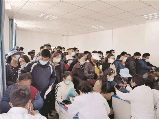 圖為5月12日上午,拉薩市城關(guān)區(qū)八廓街道社區(qū)衛(wèi)生服務(wù)中心內(nèi)前來登記接種疫苗的群眾絡(luò)繹不絕。拉薩融媒記者攝